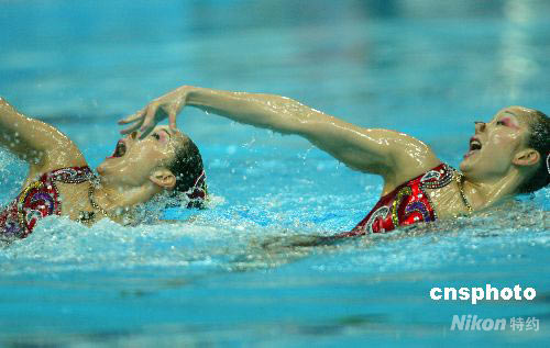 圖:花游奧運(yùn)資格賽中國(guó)姐妹花成功首演(2)
