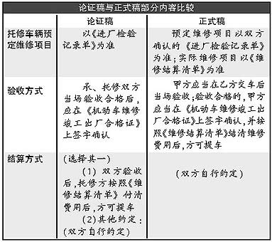 據(jù)市工商局合同處王珊處長(zhǎng)介紹,合同范本主要適用甲方委托乙方進(jìn)行的汽車總成修理、整車修理或道路運(yùn)輸營(yíng)運(yùn)車輛的二級(jí)維護(hù)。