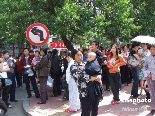 5月12日下午2時(shí)29分左右,四川汶川地震波及襄樊,襄樊震感強(qiáng)烈,高層樓上的居民跑到樓下空地避險(xiǎn)。余震發(fā)生時(shí),襄樊市的街面上站滿了人。下午3時(shí)15分,人們恐慌不安的心情開始緩解,該市中心醫(yī)院的住院病人開始逐步返回樓內(nèi),大街上的人也漸漸稀少起來,生活秩序慢慢恢復(fù)正常。 中新社發(fā) 李得榮 攝
