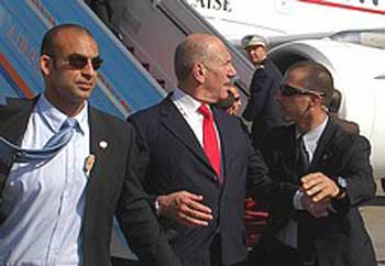 以色列安全人員護(hù)送總理奧爾默特離開現(xiàn)場。(以色列耶路撒冷郵報圖)