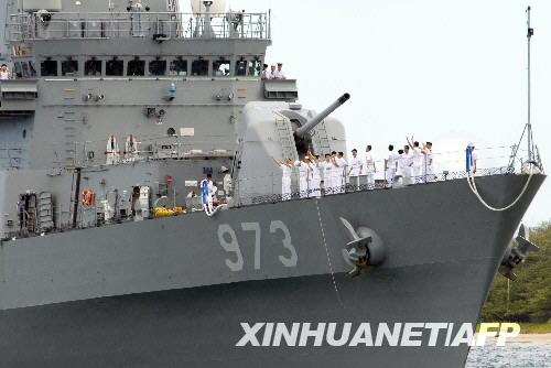 韓國海軍的一艘軍艦正駛向美國夏威夷的珍珠港。新華社/法新