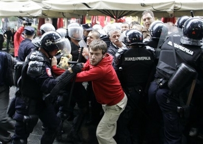 卡拉季奇被捕22日引發(fā)了卡拉季奇擁護(hù)者與塞爾維亞防暴警察在貝爾格萊德發(fā)生暴力沖突。