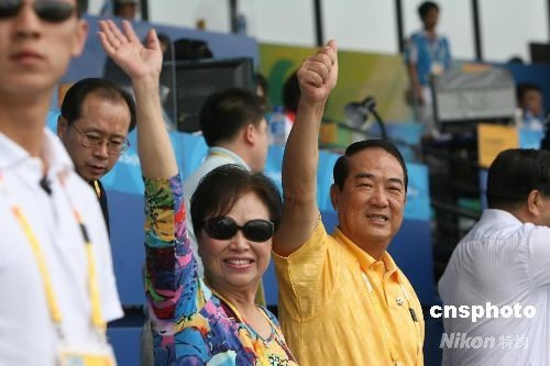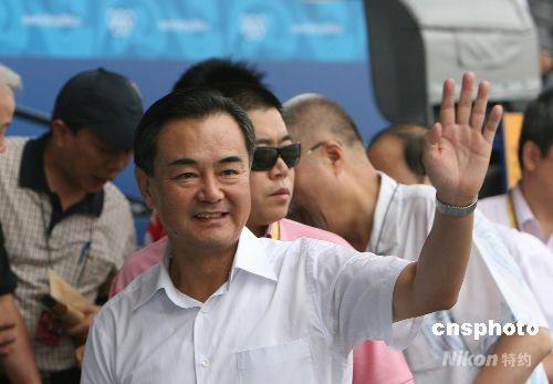 國(guó)臺(tái)辦主任王毅觀看中華臺(tái)北棒球隊(duì)比賽。中新社發(fā) 武仲林 攝