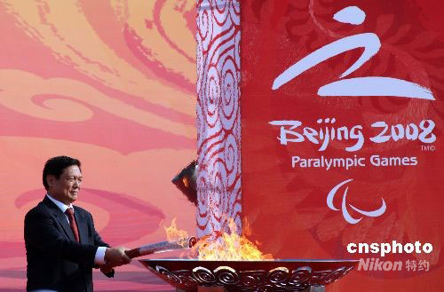 9月5日,2008年北京殘奧會火炬在北京中華世紀(jì)壇開始傳遞。