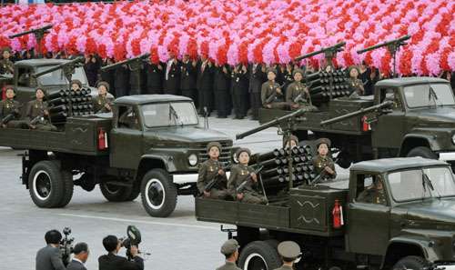有報(bào)道說(shuō),閱兵儀式上出動(dòng)了炮兵團(tuán)、地對(duì)空導(dǎo)彈發(fā)射器以及槍支等武器。朝鮮國(guó)防委員會(huì)副委員長(zhǎng)金永春次帥等軍隊(duì)領(lǐng)導(dǎo)在指揮臺(tái)觀看了長(zhǎng)達(dá)約30分鐘的儀式。閱兵儀式后,由10萬(wàn)名平壤市民舉行了盛裝游行,大學(xué)生等人進(jìn)行了火把演出。