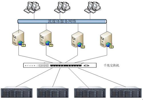 本方案通過(guò)4個(gè)視頻服務(wù)器對(duì)外提供視頻點(diǎn)播服務(wù)。在視頻服務(wù)器后端建立一個(gè)