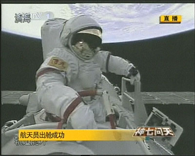9月27日16時(shí)44分許,“神七”航天員翟志剛走出艙外開始實(shí)施出艙活動(dòng)。