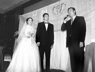 昨晚6時(shí)18分,上海的明天廣場萬豪酒店5樓宴會(huì)廳,中國男籃隊(duì)長劉煒和相戀10年的妻子王衛(wèi)婷正式完婚,包括姚明在內(nèi)的300多位嘉賓一起見證了這份甜蜜的浪漫。