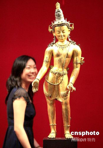 圖為鎏金銅佛像,價(jià)值六百萬(wàn)美金。中新社發(fā) 張勤 攝