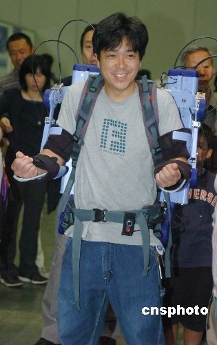 圖為穿戴式機(jī)器人。經(jīng)此類機(jī)器人“武裝”后的人可具備“超常能力”。中新社發(fā) 朱沿華 攝
