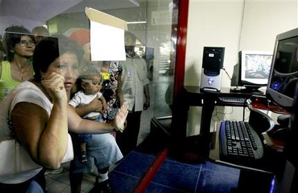 據(jù)稱(chēng),雖然古巴政府已經(jīng)放開(kāi)電腦禁售令,但除了少數(shù)官員和記者外,絕大多數(shù)古巴民眾仍然被禁止在家中連接國(guó)際互聯(lián)網(wǎng)。所以現(xiàn)在他們購(gòu)買(mǎi)的新電腦大多數(shù)都無(wú)法進(jìn)入國(guó)際互聯(lián)網(wǎng)。為此,一些民眾在黑市上花錢(qián)購(gòu)買(mǎi)電子郵件進(jìn)入許可,其實(shí)也就是與被官方批準(zhǔn)連接國(guó)際互聯(lián)網(wǎng)的用戶(hù)共享賬號(hào)。不過(guò)由于古巴還沒(méi)有銀行信用卡,所以他們還不能進(jìn)行網(wǎng)上購(gòu)物。
