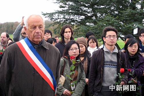 中新網(wǎng)巴黎11月15日電 (黃滟稀) 為紀(jì)念一戰(zhàn)結(jié)束九十周年,緬懷為法捐軀華工先輩,近百名旅法華人、留法中國(guó)學(xué)生以及法國(guó)友人15日在法國(guó)北部諾萊特華工墓園舉行了莊重的祭奠儀式。