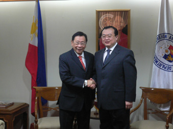 羅慕洛外長對劉大使到任表示熱烈歡迎,祝他在菲工作順利,生活愉快。劉大使表示將在任內(nèi)為促進中菲關(guān)系發(fā)展、增進兩國人民友誼努力工作。
