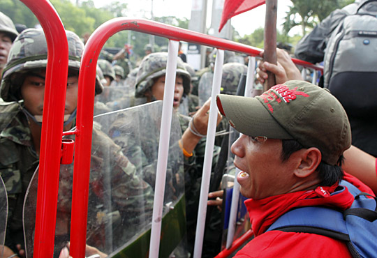 泰國(guó)反獨(dú)裁民主聯(lián)盟支持者11日包圍了總理阿披實(shí)位于首都曼谷的住所。另外,至少數(shù)百名反獨(dú)聯(lián)示威者強(qiáng)行沖進(jìn)東盟系列峰會(huì)媒體中心。