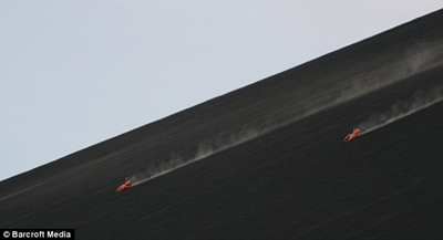 中新網(wǎng)5月9日電 據(jù)英國(guó)媒體報(bào)道,尼加拉瓜境內(nèi)的Cerro Negro火山現(xiàn)在成了極限運(yùn)動(dòng)愛(ài)好者們的一個(gè)新去處。他們?cè)谶@座活火山上,踩上特制的滑板,一滑而下,體驗(yàn)超刺激的感覺(jué)。該地火山滑板運(yùn)動(dòng)已經(jīng)吸引了數(shù)千名游客。