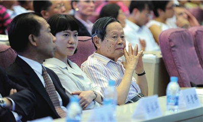 諾貝爾物理學(xué)獎獲得者、美國能源部部長、華裔,朱棣文的三重身份吸引了大批清華學(xué)子,諾獎得主楊振寧和夫人也到場旁聽捧場,能容納三百人的報告廳座無虛席,過道都站滿了慕名前來的同學(xué)。11點,朱棣文準時現(xiàn)身,盡管天氣炎熱,他仍然正裝穿扮,白色襯衫、深色西裝、深色領(lǐng)帶。