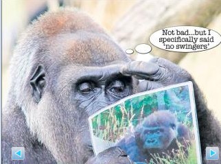 中新網(wǎng)8月29日電 據(jù)臺(tái)灣“今日新聞”報(bào)道,獨(dú)守“閨房”已經(jīng)很久的大猩猩阿菲,正在仔細(xì)端詳相親對(duì)象“阿波”的照片。這張照片是倫敦動(dòng)物園園方送給阿菲的,他們打算介紹“阿波”給阿菲作未來(lái)男朋友。