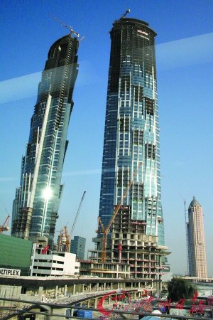 Burj Dubai可謂是樓市繁榮的見證,它簡直就是個大工地。各式摩天大樓爭奇斗艷,有的像雙子塔、有的像要騰空的火箭。連同高聳入云的迪拜塔,它們都有一個共同點:全部未對外開放,現(xiàn)場看不到施工者,大樓上的起重機也被晾曬在一邊。
