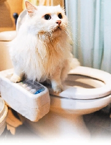 第4屆北京發(fā)明大賽參賽作品之一,可讓寵物在4至5周內(nèi)學(xué)會使用馬桶排便。發(fā)明者畢榮華制作出一個培訓(xùn)箱:在三層合一的座架上安裝帶有定位釘?shù)淖,并將一個帶有管塞和蓋板(或排架)的漏斗裝在座面上。培訓(xùn)過程中,逐漸加高座架、減少漏斗中的貓沙,加到第三層時與馬桶同高,最后將座面移到馬桶上并去掉漏斗,不再使用貓沙,這時貓咪就會習(xí)慣蹲坐在馬桶上排便。