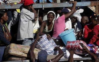 中新網(wǎng)1月19日電 據(jù)外電19日報(bào)道,數(shù)以千記的海地災(zāi)民爭相擠上開往太子港郊區(qū)的公共汽車,希望在那里能夠更容易的找到食物和水。