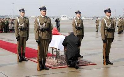 據(jù)報(bào)道,享年66歲的波蘭第一夫人瑪麗亞的遺體13日抵達(dá)華沙奧肯切(OKECIE)國際機(jī)場,一輛靈車將載著覆蓋波蘭國旗、裝有瑪麗亞遺體的靈柩穿越街道,前往華沙總統(tǒng)府。已故總統(tǒng)卡欽斯基的孿生哥哥與卡欽斯基女兒前來機(jī)場迎接瑪麗亞的遺體。街道兩邊數(shù)以萬計(jì)的民眾夾道站立,等待總統(tǒng)夫人靈柩的到來,他們神情哀痛,默默無語。