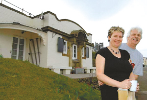 5年前,當(dāng)斯卡伯勒市北海海濱懸崖上的一座廢棄公廁以15000英鎊的價(jià)格對(duì)外招租后,特拉茜和格雷厄姆不約而同地想到,他們?nèi)プ庀聛恚缓蟾脑斐梢粭澠恋暮I別墅。