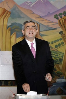 亞美尼亞中央選舉委員會20日對超過70%的選票進(jìn)行統(tǒng)計后宣布,薩爾基相得票率為55.7%,大幅領(lǐng)先其他候選人。