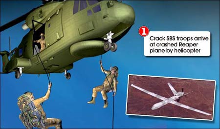 據(jù)報(bào)道,這架“死神”無人駕駛偵察機(jī)在此前執(zhí)行一項(xiàng)特別任務(wù)時(shí)墜落。英國皇家特種舟艇部隊(duì)(SBS)派出人員,乘直升機(jī)降落在偵察機(jī)墜落地點(diǎn)附近,將包括相機(jī)和電腦存儲(chǔ)器在內(nèi)的一些高機(jī)密儀器取走。