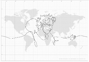 細的托運路線和順序。55天之后,這個箱子在橫跨全球6個大洲62個國家后,順利回到了起點——斯德哥爾摩,全部行程約110664公里。然后,埃里克借助電腦將GPS記錄下的路線串聯(lián)起來,繪出一幅“一筆劃的自畫像”。就在舉世驚嘆之際,他卻于日前在其官方網站上“不打自招”,所謂“自畫像”不過是他為完成畢業(yè)設計而虛構出來的一場鬧!
