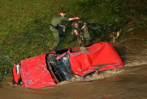 據(jù)報道,在措勒納伯縣,有多輛汽車被洪水卷走(見圖),目前車上人員生死不明。當(dāng)?shù)匾殉闪⒁粋危機應(yīng)急指揮部。在容吉根地區(qū),大量房屋浸泡在水中,電力供應(yīng)中斷。在上施瓦本地區(qū),一列列車撞上了被暴風(fēng)雨刮倒的樹木,火車司機生命垂危,已被緊急送往醫(yī)院救治。另有3名婦女被淹死。