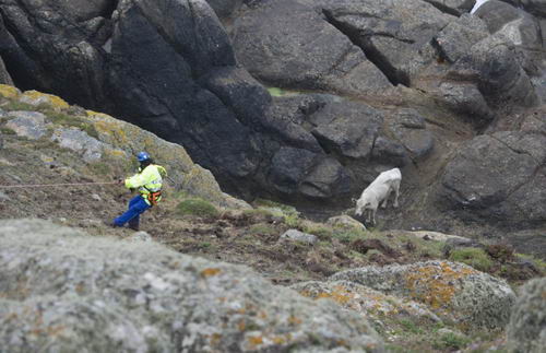 由于擔心那頭牛的身體狀況,皇家防止虐待動物協(xié)會7月1日主動表示愿意提供營救費用。營救行動于3日展開,27名海岸警衛(wèi)隊、皇家防止虐待動物協(xié)會、消防隊員、皇家海軍航空兵人員在山澗上的懸崖上集合以協(xié)調(diào)營救行動,等待“海王”直升機和五名機組人員的到來,好奇的當?shù)厝撕团杂^者也在一旁觀看,整個營救行動在六分鐘內(nèi)完成。