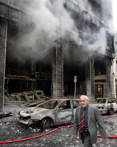 雖然政府公開(kāi)呼吁各方冷靜,但在周日早間騷亂稍微平息之后,從中午開(kāi)始,示威者繼續(xù)到處放火,向警察和商鋪投擲石塊,雅典市中心濃煙密布,在直升機(jī)的俯瞰下,灰蒙蒙一片。