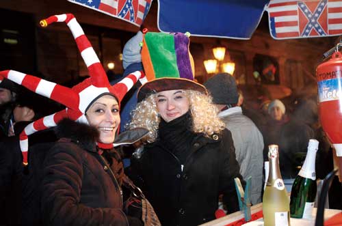 中新網(wǎng)1月2日電 據(jù)《歐洲萬事達(dá)時報》報道,2008年的最后一天,在午夜時分,匈牙利首都布達(dá)佩斯市中心的瓦茨街(步行街)廣場,來自不同國家的游客和匈牙利人在這里度2008迎2009的到來。人們戴著五顏六色的假發(fā)與各種帽子,拿著香檳,扛著、拿著各種款式的喇叭邊走邊吹走入步行街迎接2009年。
