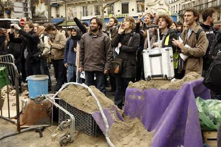 索邦大學(xué)(Sorbonne)學(xué)生們盛裝上演了一系列街頭活動(dòng),其中有學(xué)生身穿中世紀(jì)服裝,表演了場“薩科齊受審”的模仿劇。