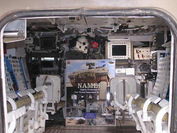 目前,該車采用“梅卡瓦”3/4主戰(zhàn)坦克的功率為882kW的AVDS柴油機,未來生產(chǎn)車輛的動力裝置有兩種選擇:L-3通信公司戰(zhàn)斗推進系統(tǒng)分部的改進型AVDS發(fā)動機和基于MTU 883柴油機的動力裝置;蛙囇b備“卡特拉尼特”(Katlanit)遙控武器站,其上裝有車長用12.7毫米或者7.62毫米機槍,外部安裝60毫米迫擊炮?稍趹(zhàn)場上重新配置遙控武器站,快速把武器改為MK 19式40毫米榴彈發(fā)射器。(王桂芝)