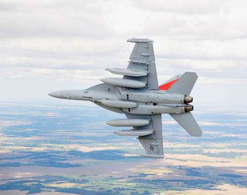 由波音公司生產(chǎn)的EA─18G“咆哮者”電子作戰(zhàn)高性能戰(zhàn)機,是屬于FA─18“大黃蜂”型戰(zhàn)機的改良型先進戰(zhàn)機。EA─18G“咆哮者”可以攜帶反雷達空地導(dǎo)彈的電子作戰(zhàn)軍機,能夠在極短的距離內(nèi)起飛降落,同時有干擾敵方雷達與電子裝備的能力。美軍在伊拉克就是使用舊版“咆哮者”來干擾路邊炸彈的引爆訊號。