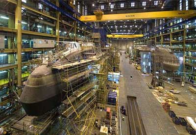 正在建造之中的“機(jī)敏級(jí)”核潛艇“機(jī)敏號(hào)”和“伏擊號(hào)”