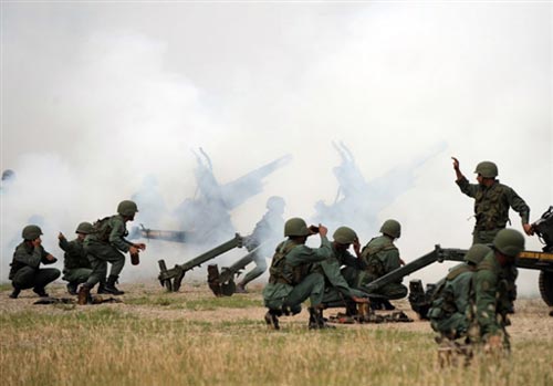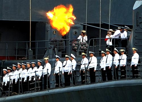 委內(nèi)瑞拉海軍部隊(duì)在陸上鳴炮還禮。