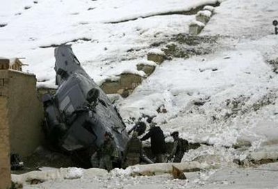 17日的直升機“硬著陸”事件發(fā)生在阿富汗靠近巴基斯坦的邊界地區(qū)。當(dāng)時,這架飛機上共有7名美軍人員。美軍聲明指出,雖然具體的事故原因仍然在調(diào)查之中,但事 發(fā)前這架直升機顯然曾遭到地面輕型武器的射擊。附近村民對記者介紹說,他們看見這架飛機被什么東西“擊中”,然后很快墜地,并冒出滾滾濃煙。