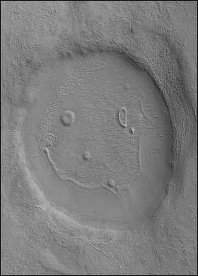 衛(wèi)星拍攝到火星"笑臉"照片 專家稱只是巧合(圖)
