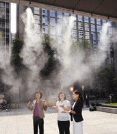 中新網(wǎng)7月14日電 綜合報道,日本一家銀行14日別出心裁在營業(yè)大樓門前設(shè)置噴水霧為顧客降溫。