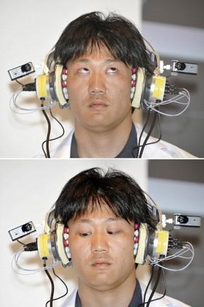 日本研究人員在展示如何用眼睛控制隨身聽。