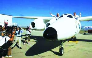 英國維珍集團(tuán)董事長理查德·布蘭森28日首次向外界展示公司太空游項(xiàng)目關(guān)鍵裝備——運(yùn)載載人飛船的母船“白騎士二號”。預(yù)計(jì)太空游首發(fā)團(tuán)將于2010年成行。