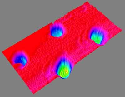 在美國宇航局網(wǎng)站公布的一幅照片上,位于顯微鏡硅襯底上的4個土壤顆粒看上去像4個小球,而實際上每個顆粒的直徑僅為1微米,相當(dāng)于1米的一百萬分之一。這樣的觀測精細(xì)度只有原子力顯微鏡才能達(dá)到,而且它可以對顆粒進(jìn)行三維觀測。