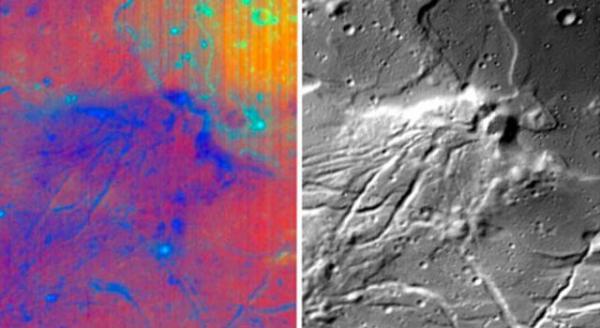 此圖是由該飛船裝配的美國宇航局月球礦物質(zhì)繪圖儀拍攝。月球礦物質(zhì)繪圖儀是"月球初航1號"首個(gè)提供月球表面高清晰度圖像的儀器,其所拍攝的這張彩色圖像不僅具備傳統(tǒng)二維圖像的長和寬,還通過顏色呈現(xiàn)其空間尺度。這種彩色是由28種不同波長的光線從月球上反射形成的。其中,從藍(lán)色至紅色揭示了巖石和礦物成份的變化,綠色則代表像輝石這樣含鐵豐富的礦石。黑白圖像是單個(gè)波長的光線所獲得的圖像,可以重新認(rèn)識這一月球表面區(qū)域的結(jié)構(gòu)和形成。