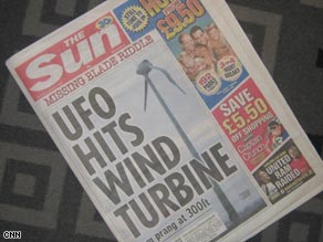 據(jù)CNN報道,本月8日 一個不明飛行物襲擊了英國林肯郡的一個小村莊,一個風能發(fā)電機的扇葉被飛行物擊出了20米遠。