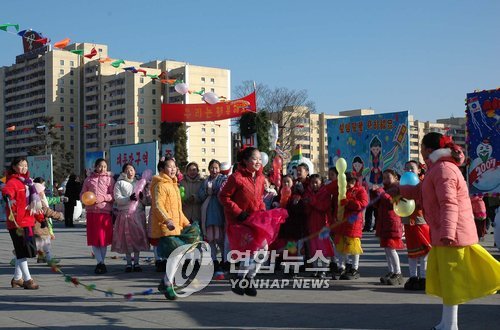 當天下午,凱旋電影院等平壤市內(nèi)電影院和文化會館以及公園人山人海,在金日成廣場,有關(guān)部門針對幼兒園學生和兒童舉辦了放風箏和打陀螺比賽。