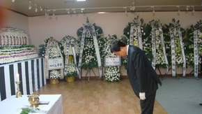 寧賦魁大使還前往專門為事故遇難者設(shè)立的共同靈堂,向遇難者名牌獻(xiàn)花、鞠躬,表示哀悼。在那里,寧大使會見了部分遇難者的家屬,代表中國政府向他們表示慰問,表示使館將全力以赴協(xié)助遇難者家屬處理好善后事宜。家屬們紛紛對此表示感謝。