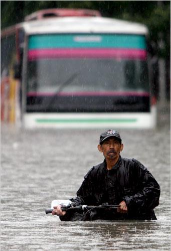 據(jù)新加坡《聯(lián)合早報》報道,雅加達(dá)很多地方,車子被困在路上,人們只好跋涉在沒膝深的泥水里。有1400萬人口的雅加達(dá),每年這個時候都會遭洪水襲擊。