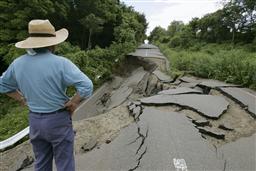 日本強烈地震導(dǎo)致公路路面嚴重開裂。
